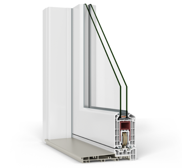 - Kapı Kanat profili 70 mm genişliğinde ve 5 odacıklı, maksimum ses, ısı yalıtımı sağlamak için 20, 24, 28, 34, 40 mm aralığındaki nitelikli camlarla birlikte kullanılması mümkündür.